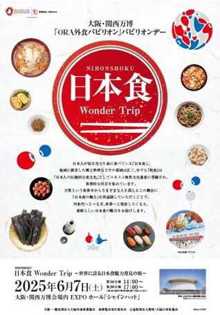 大阪外食産業協会では、万博会期中の6月7日(土)に万博会場内のイベントスペース「EXPOホール」にてパビリオンデーイベントとして、日本食Wonder Trip ~世界に誇る日本食魅力発見の旅~を開催いたします。