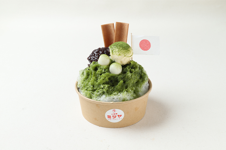 - 心斎橋ミツヤ 一番人気商品!の宇治金時に抹茶たっぷりバニラアイスクリームと京都の八ッ橋を添えて