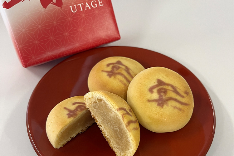 - バターの風味ゆたかなしっとりスイートポテト、『宴』のロゴがプリントされたお饅頭です。万博期間中のみの限定販売、また『宴』をイメージした鮮やかな赤のパッケージです。