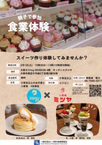 本年も昨年に引き続き第2回食業体験イベントを2025年2月1日(土)大阪ガスhug MUSIUMにて開催します。現在参加者を募集しています。ぜひこの機会に、有名店の指導で人気のパフェとパンケーキの調理体験してみませんか?