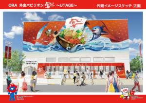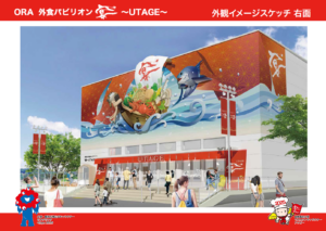 ORA(大阪外食産業協会)が、2025年大阪・関⻄万博に⺠間パビリオンとして出店をする「ORA外食パビリオン〜宴〜」について、食の提供(販売)を行う1階部分の内観が固まってきましたので公開させていただきます。